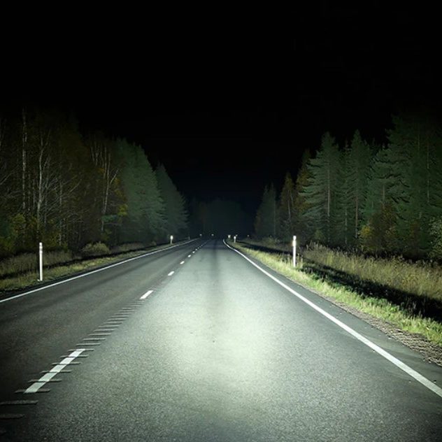 Edessä tehokas lisävalo joka valaisee pimeät tiet yöllä ja onnettomuusriski metsän eläinten kanssa pienenee.