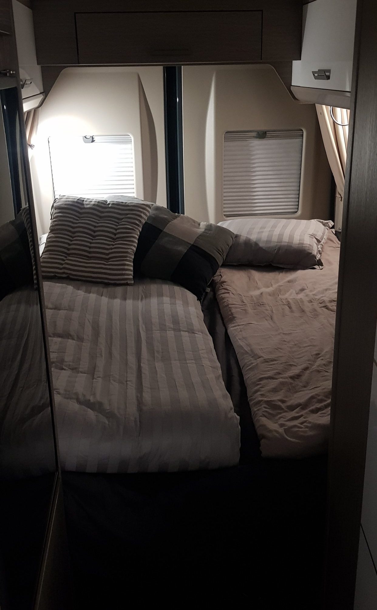 Mukaan mahtuu vielä pieni lapsi koska sänky on asetettu pitkittäin ja sopii myös pitkälle ihmiselle.